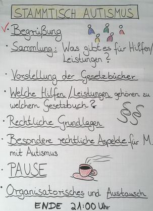 Einmal im Monat findet, unter der Leitung von zwei Fachkräften, für Eltern von Kindern mit Autismus ein Elternstammtisch statt.